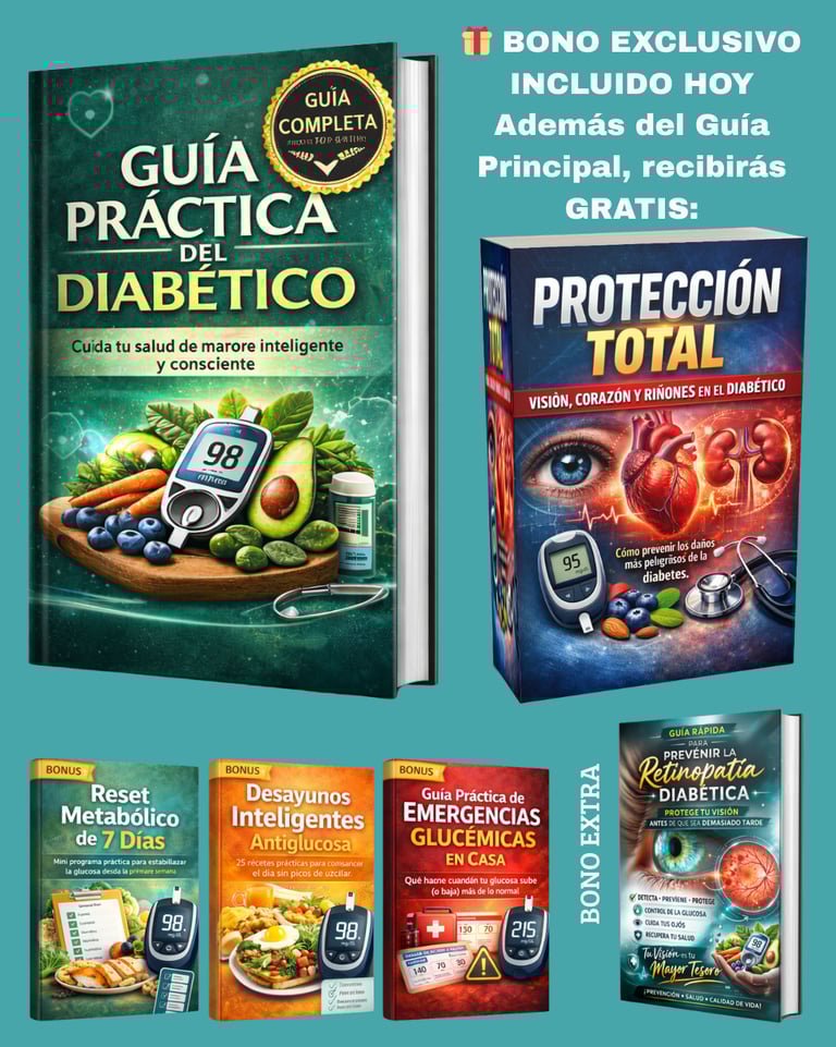 🎁 BONO 4: Guía Práctica de Emergencias Glucémicas en Casa 🎁 BONO 5: Protección Total: Vision, Corazón y Rinónes